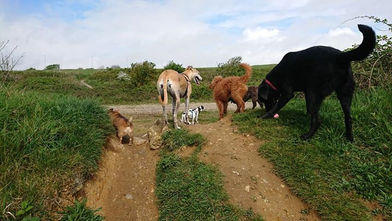 At Hotdogs Dog Walking my aim is to help keep your dog healthy, agile and active while socialising with other dogs in my care. Allowing time to sniff, chew sticks and explore as well as strokes and bonding time with me.